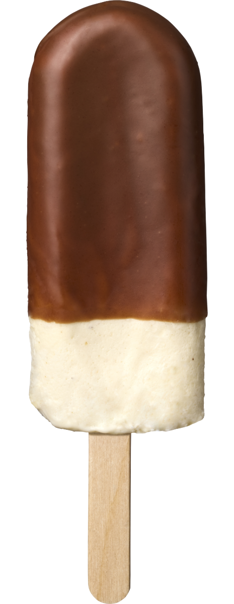 Silkeblød vaniljeis overtrukket med sprød mælkechokolade.